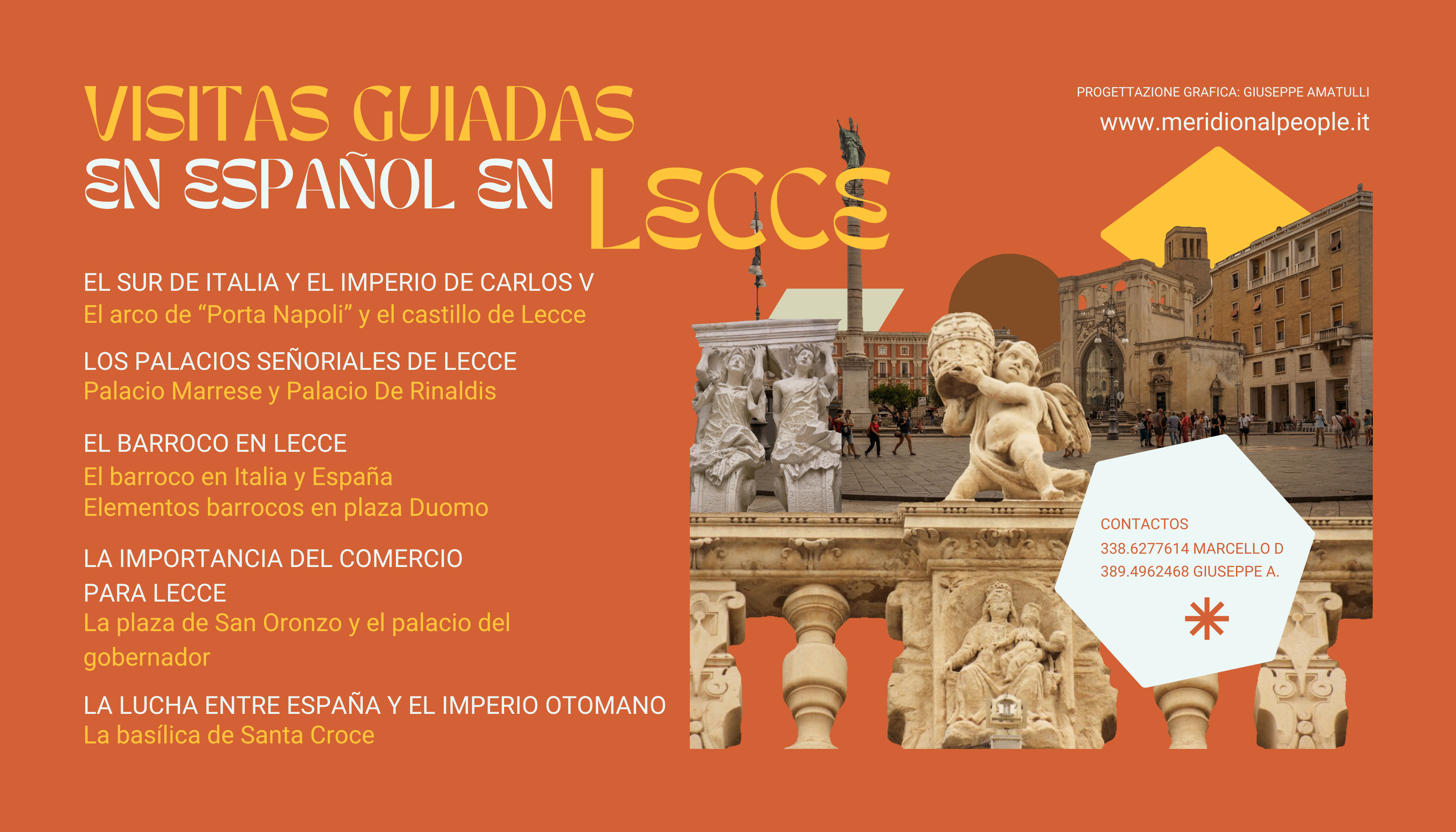 Per raccontare questa relazione abbiamo scelto di organizzare delle visite guidate a Lecce in lingua. Gli itinerari sono rivolti soprattutto alle scuole che prevedono l’insegnamento dello spagnolo.